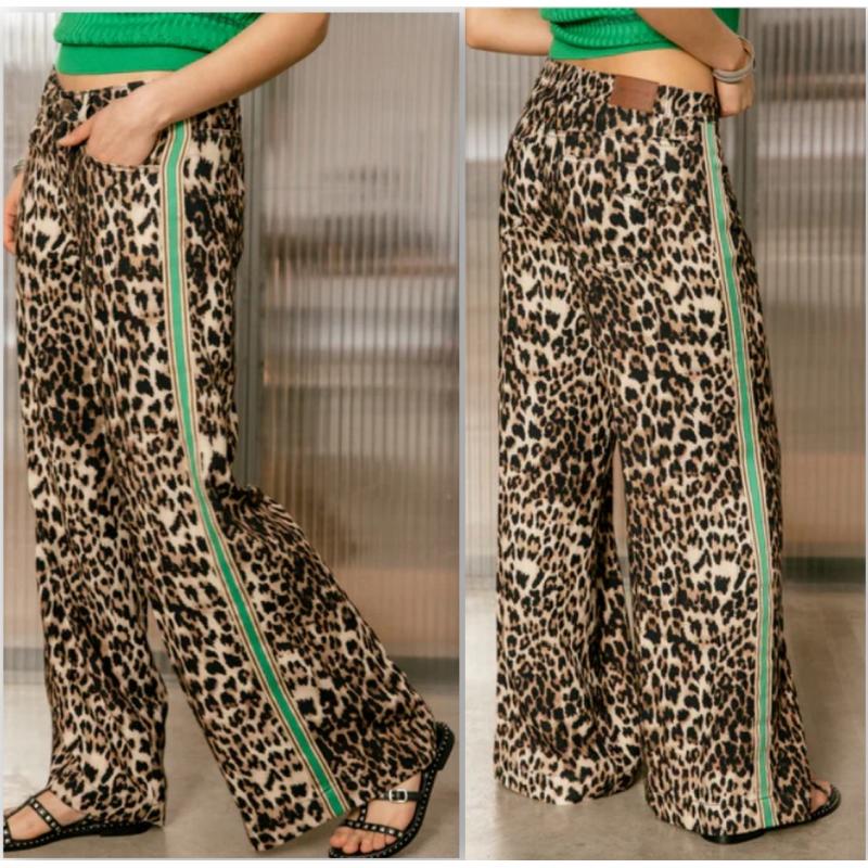 • Matière fluide non stretch, aspect lin, imprimé léopard
